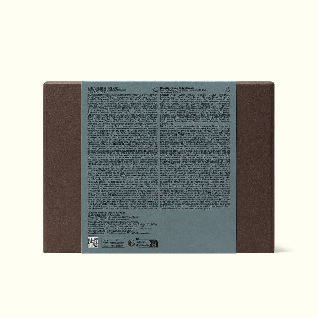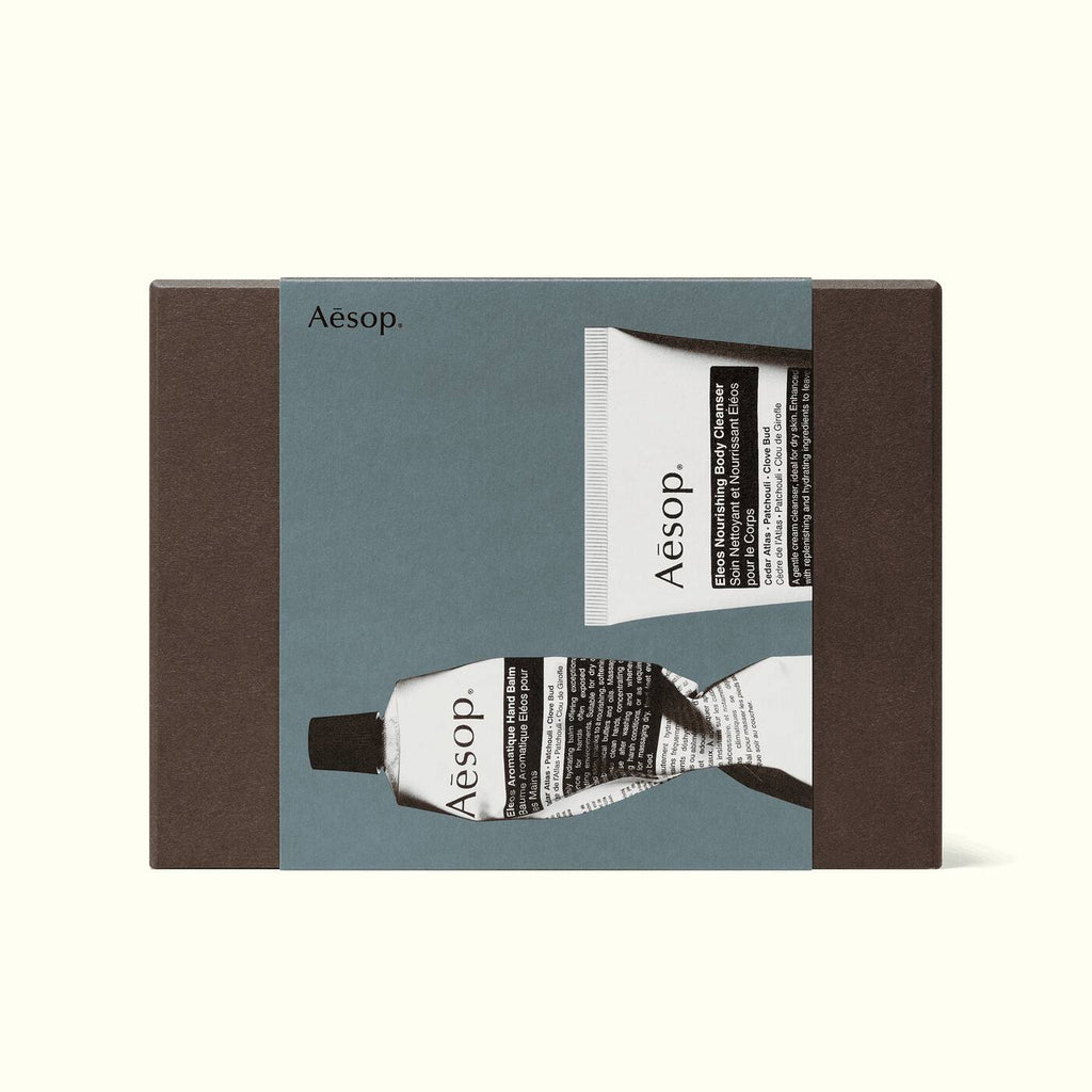 Contents: Eleos Aromatique Hand Balm, Eleos Nourishing Body Cleanser
