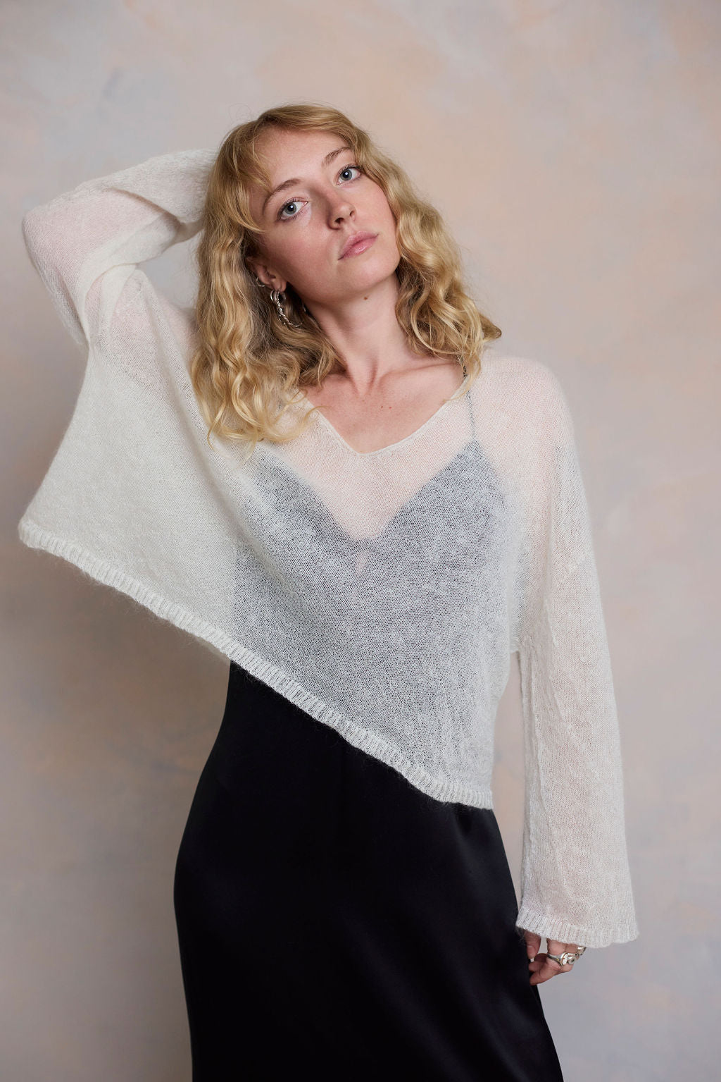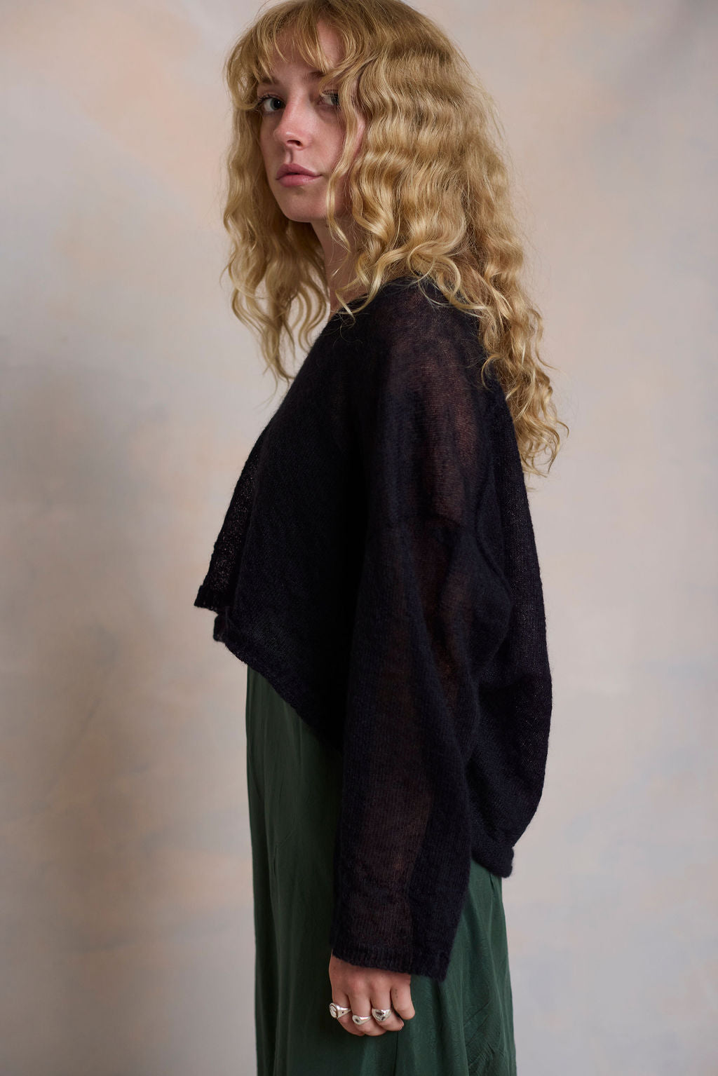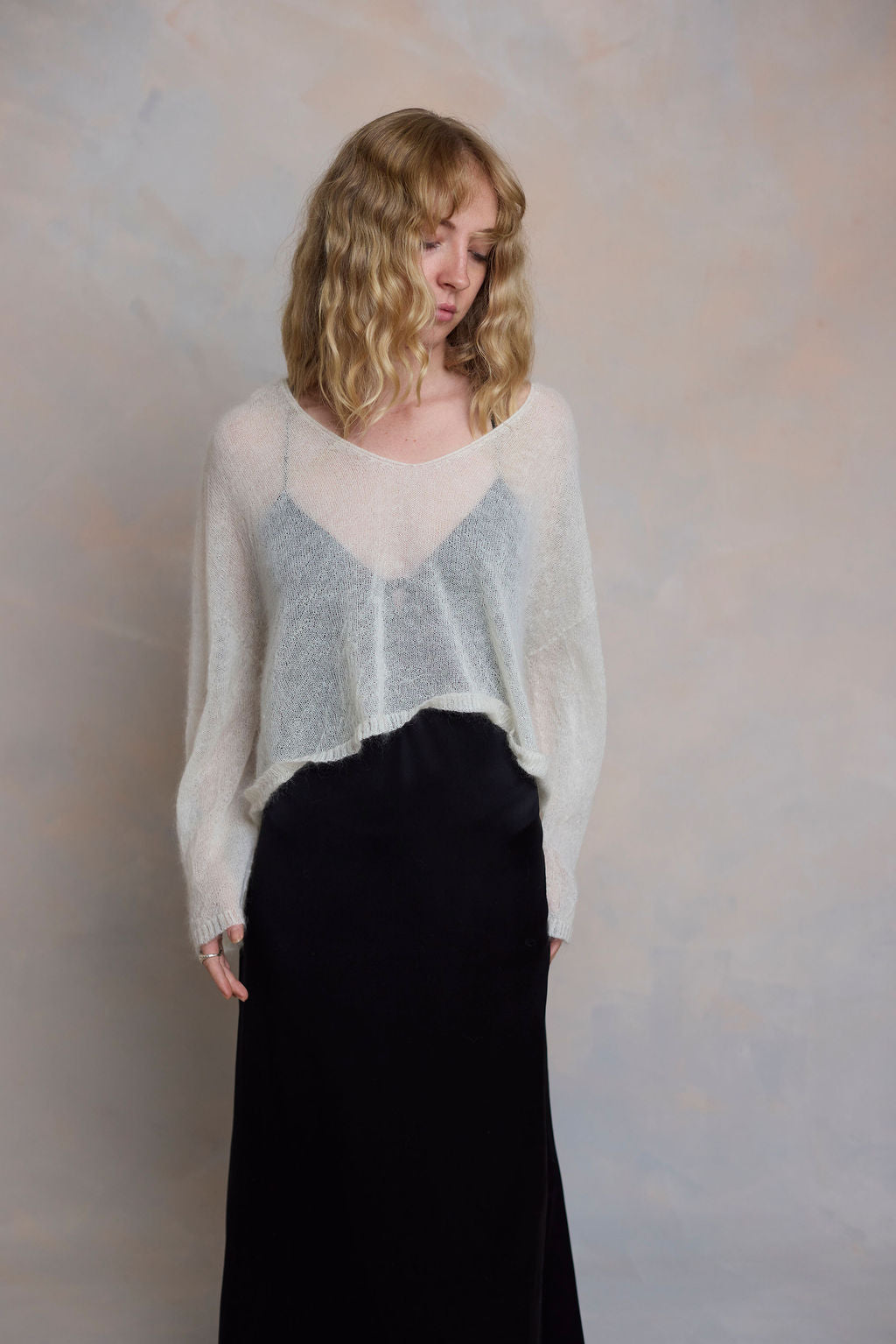 Mohair Wool Crop V-neck Sheer Knit Crop Jumper