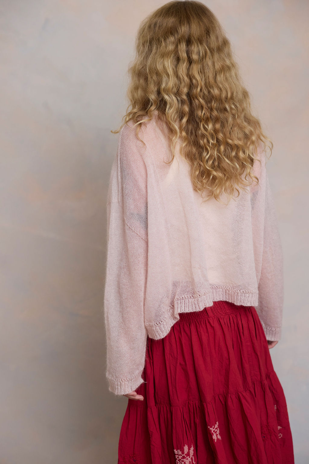 Rib lace trim on cuffs and hem - loose and relaxed fit - a light & luscious layering piece.