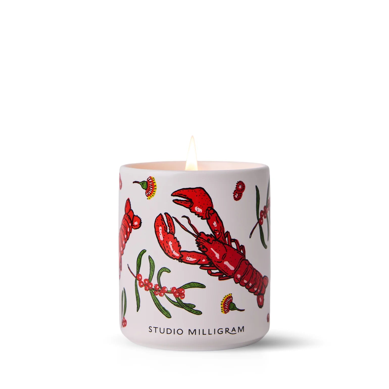 Celebrate the festive season by delighting all your senses with the captivating Lobster Christmas Ceramic Candle from Studio Milligram.